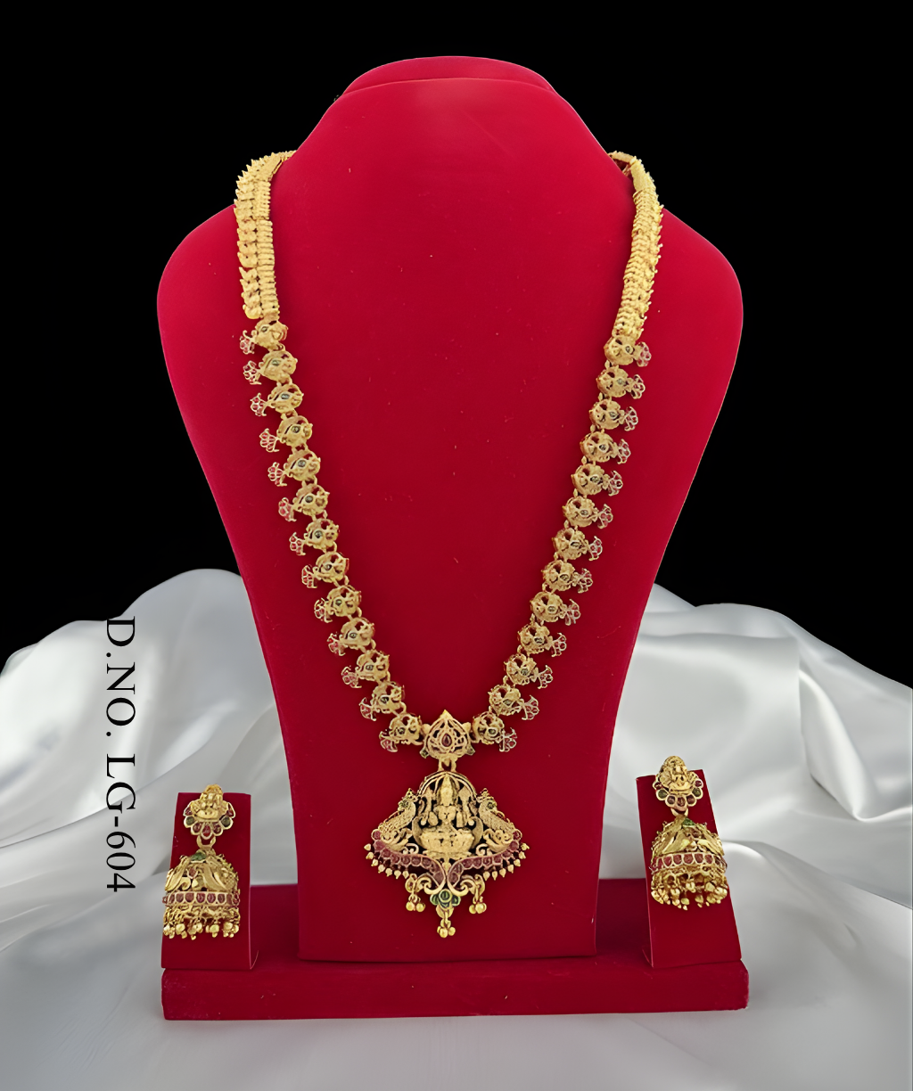 Lakshmi Devi Long Haram Set – Antique Gold Finish